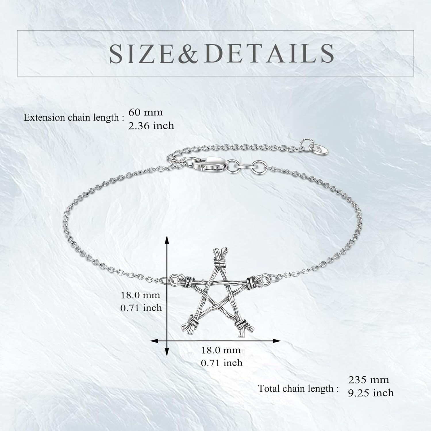 This beautiful sterling silver pentacle bracelet is a wonderful pentacle jewelry for women. Sterling silver pentacle bracelet is made of 925 sterling silver, which is hypoallergenic and suitable for sensetive skin. Perfect as a romantic surprise or birthday gift to your wife, or the one you caabout. This beautiful pentacle gifts include: 1 x sterling silver pentacle charm bracelet, 1 x polishing cloth, 1 x gift box. Perfect pentacle gift, also suitable for any gift-giving occasion such as Mother's Day, anniversary, graduation, Thanksgiving Day, and Christmas. YFN is responsible for any quality issue, any question or advise, please tell us at the first time.
