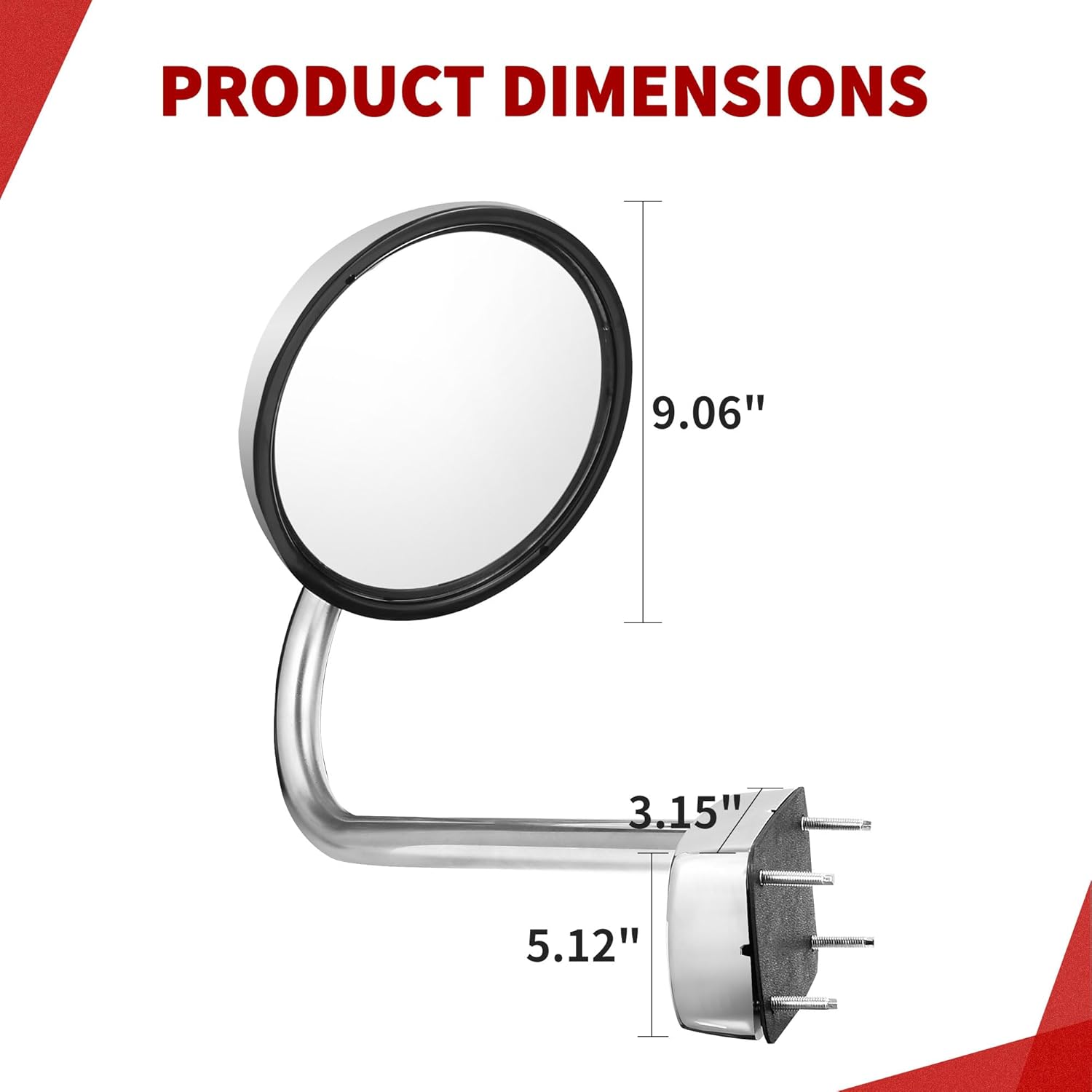 YITAMOTOR Left Driver Side Mirror Hood Mirror Compatible with Kenworth T680 Peterbilt 579 587, Manual Adjustable Chrome Replacement Stainless steel