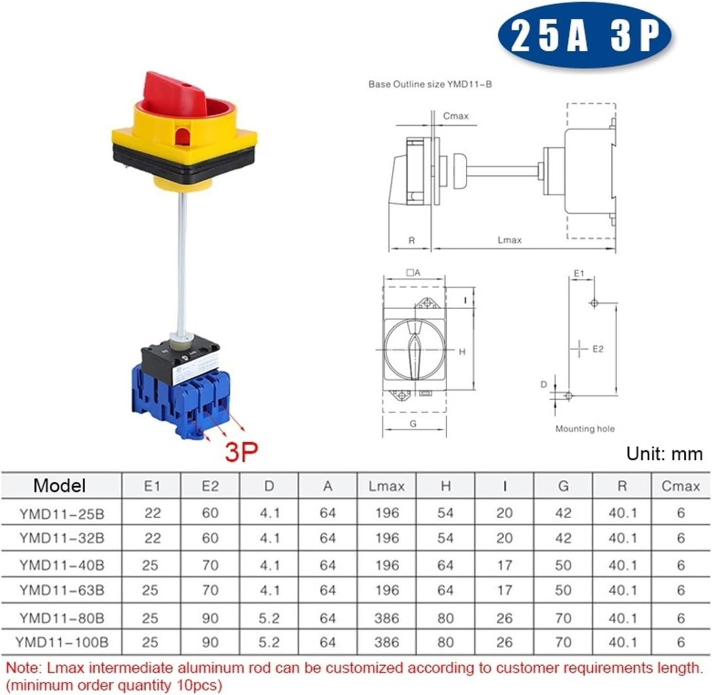 industrial switchSwitchesModel Number: YMD11-B SeriesPole Number: 3/4PTerminal Number: 6/8 ScrewsFunction: Operating outdoor with aluminium barCan replace other model number: LW30 GLD11 JFD11 SD11Hole Series Current: 25A 32A 40A 63A 80A 100AUi Voltage: 690V