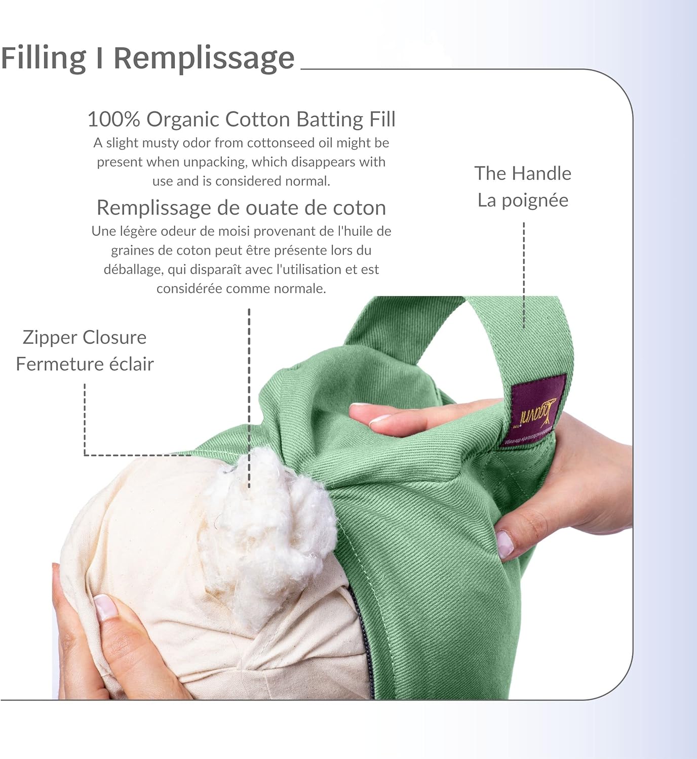 Yogavni’s Yoga Bolster assists with deep breathing exercises, keeping your chest open throughout the pranayama practice, and extends & improves inhalation & exhalation breathes while supporting your spine to strengthen your Yoga practice.This Yoga Bolster has a removable canvas cover for easy cleaning and a convenient durable side strap for carrying. Care instructions:Unzip the cover and remove the liningMachine wash the cover in cold water on delicate cycleHang to dryAttention: Do not wash the cover with the insert!