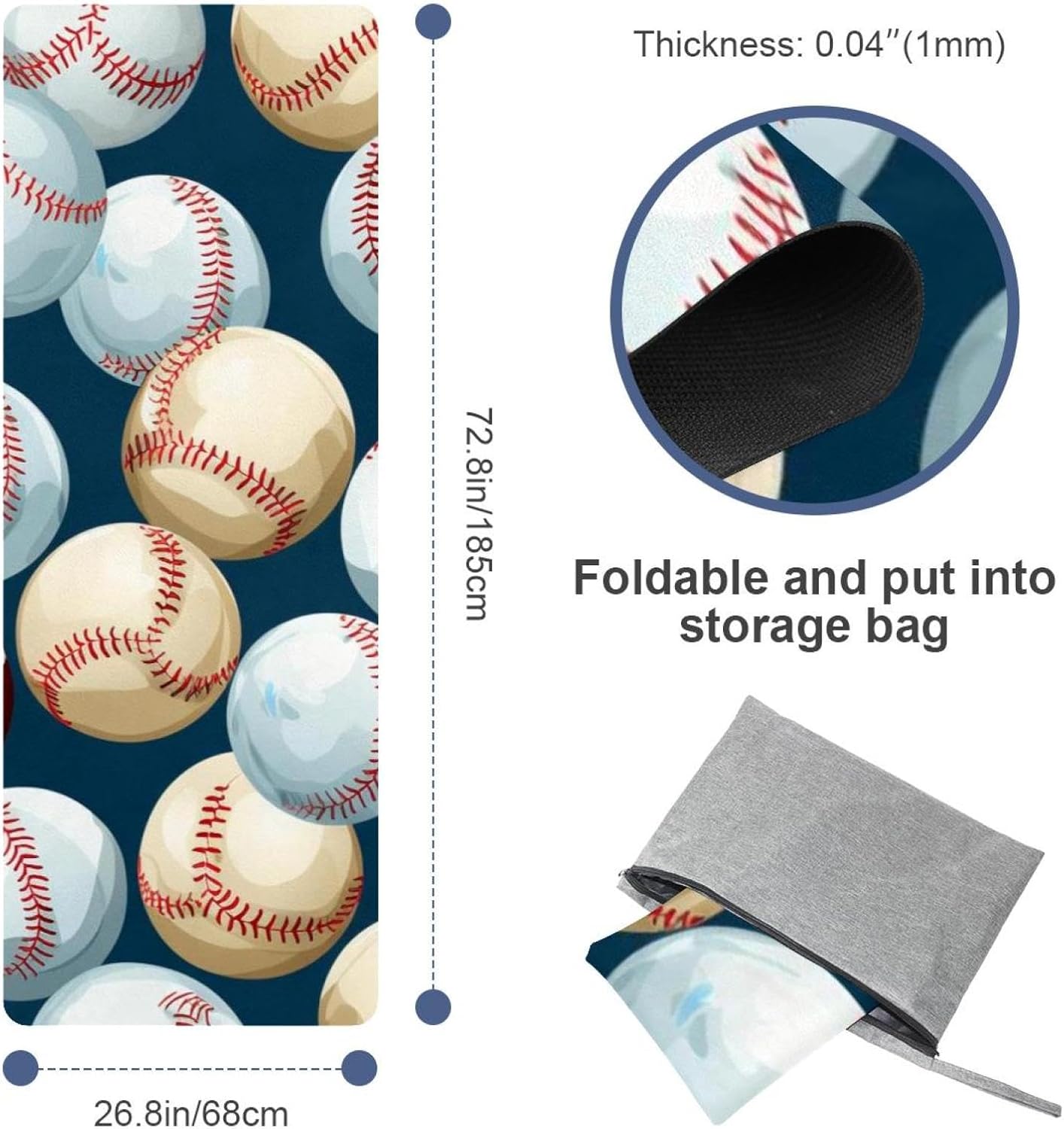 MUOOUM Yoga Mat Towels - Available in A Variety of Awesome Patterns Eye-catching Pattern These vibrant patterns will make your workout more enjoyable. Easy Carrying Yoga Towel for Travel Lightweight and compact, the towel can keep your bag weight down on the go. Easily pack & store inside the mesh travel bag to take to classes, gym, travel, camping, beach & more. Features: * Material: Suede fabric * Size: 72.8x26.8 in / 185x68 cm * Thickness: 0.04 in / 0.1 cm * Weight: 1500g * Color: As the picture shows Package Includes: 1 x Yoga towel 1 x storage bag Tips: 1. Due to the shooting angle and shooting light problems, the product is allowed to have a slight color difference 2. We offer customized services, you can customize special styles for family and friends, if you need, please feel free to contact us