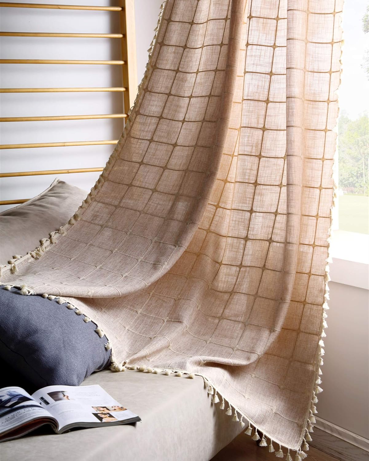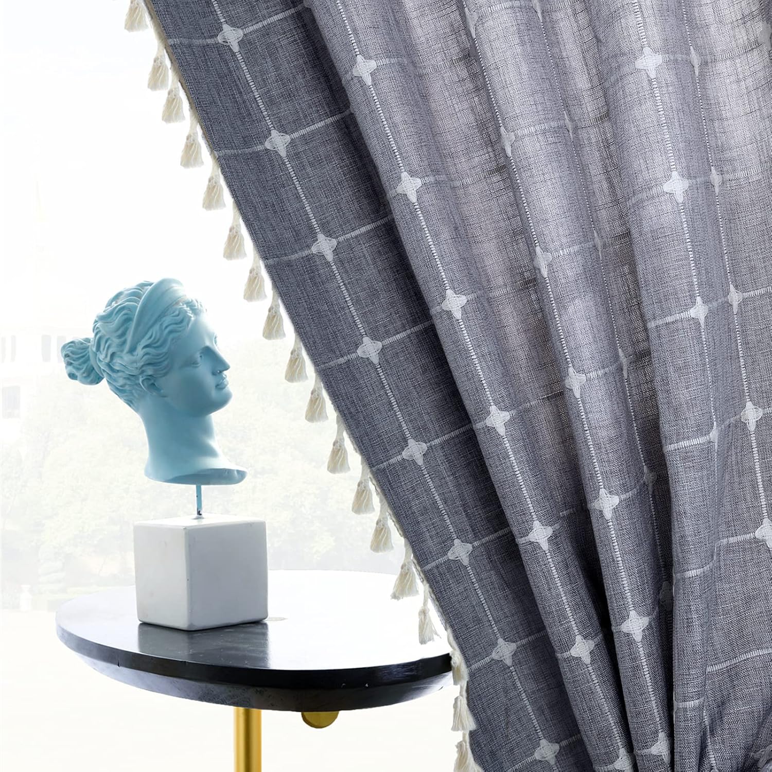 Make your room from drab to fabulous with this vintage chic curtains for kitchen. Features tassel fringe along the side, classic grey and white plaid designs fit to add to any room decor. Each printed fabric piece will instantly add depth and texture to your room. YoKii Gray Geometric 36 Inch Curtains for Kitchen Bathroom, Rod Pocket Cotton Linen Soft Short Panels Draperies Semi Sheer Modern Vintage Embroidery Small Window Treatments Kitchen Decor. FEATURES: * Made of flax linen blended fabric. * Includes: Pair of 24’’ W x 36’’ L short curtain panels. * Subtle stitching at the boarder make sure its long-lasting use. * Rod pocket for complete look. * Stylish & Practical: Using the cafe panel 24" over my sink / window in the room just add a splash of color and warmth. They provide just the right amount of privacy to kitchens and fit the bill. * Easy care: Machine washable, cold water, gentle cycle. Do not bleach. * Complete the Look: These geometric kichen curtains can be combined with coordinating window topper B08S2WFF2C in YoKii store (sold separated). * Return Policy: Try our bohemian kitchen window curtain risk free. 24 hours service on call. Refund, replacement ensures you a 100% satisfaction shopping experience.