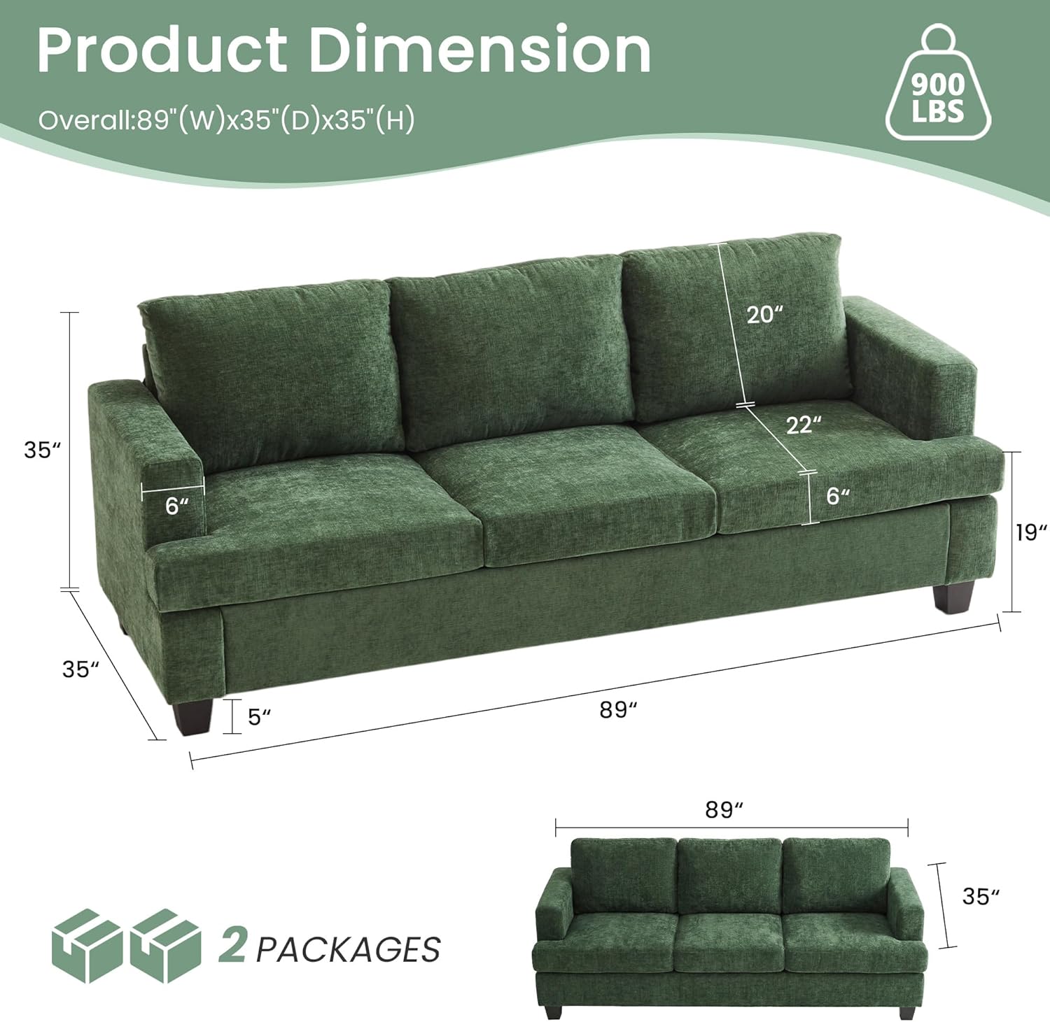 | Size | 89" 3-Seater |