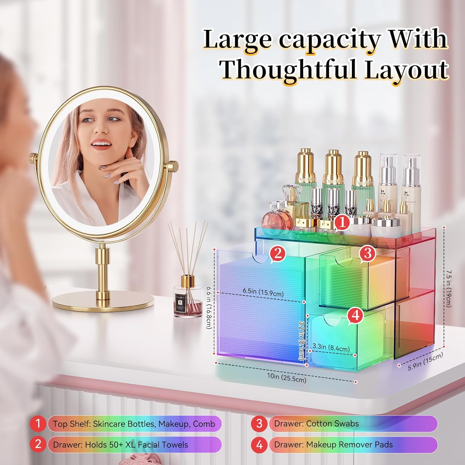 | Other Special Features of the Product | Custom-fit compartment for Clean Skin Club Towels XL., Exclusive triple-drawer design for organized skincare essentials., Four-layer structure separates towels, pads, swabs, and cosmetics., Holds 50+ XL disposable facial towels (towels not included), U-shaped opening allows one-hand towel access. |