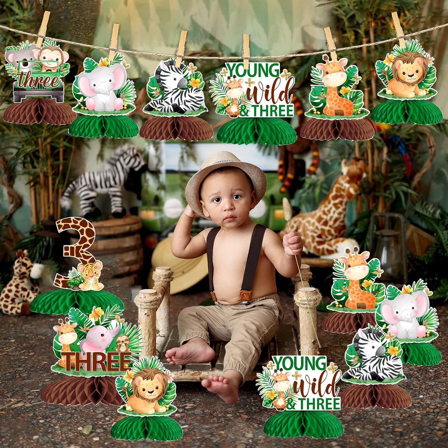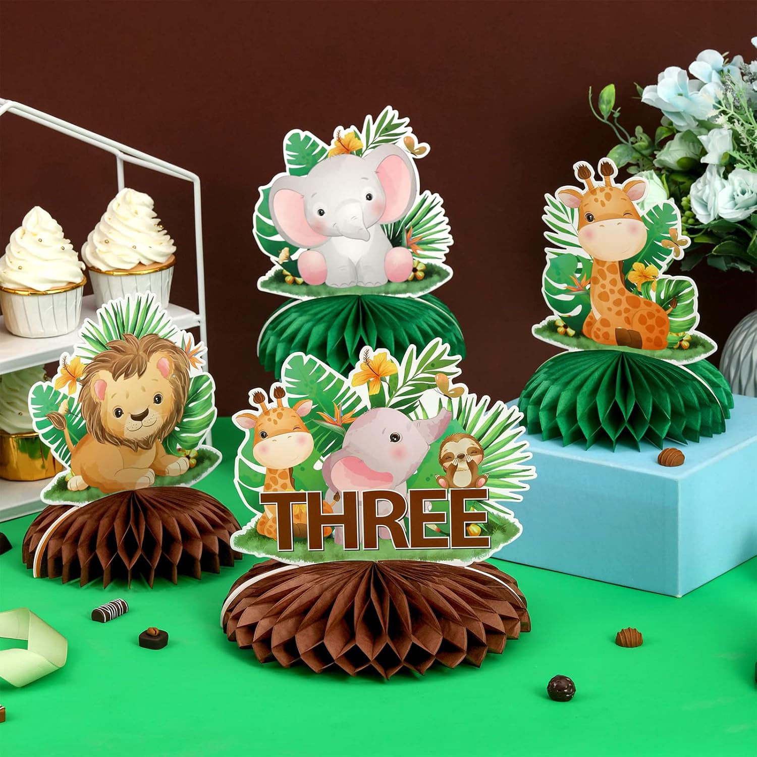 The package includes: 8pcs jungle 3rd birthday honeycomb centerpieces