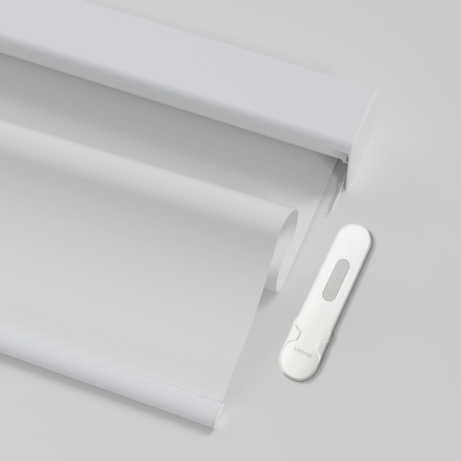 Youngoo Motorized Blinds with Remote, 100% Blackout Roller Shades, Cordless electirc Blinds for Indoor Windows, Customized Electric Window Shades Work with Remote only, White 31W X 72H