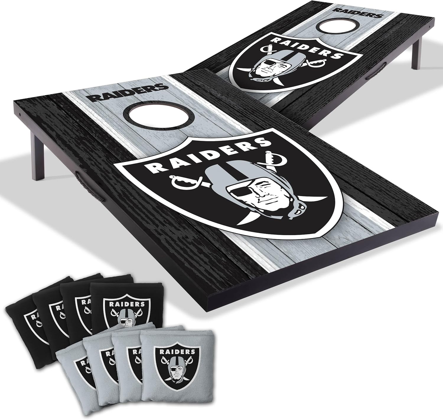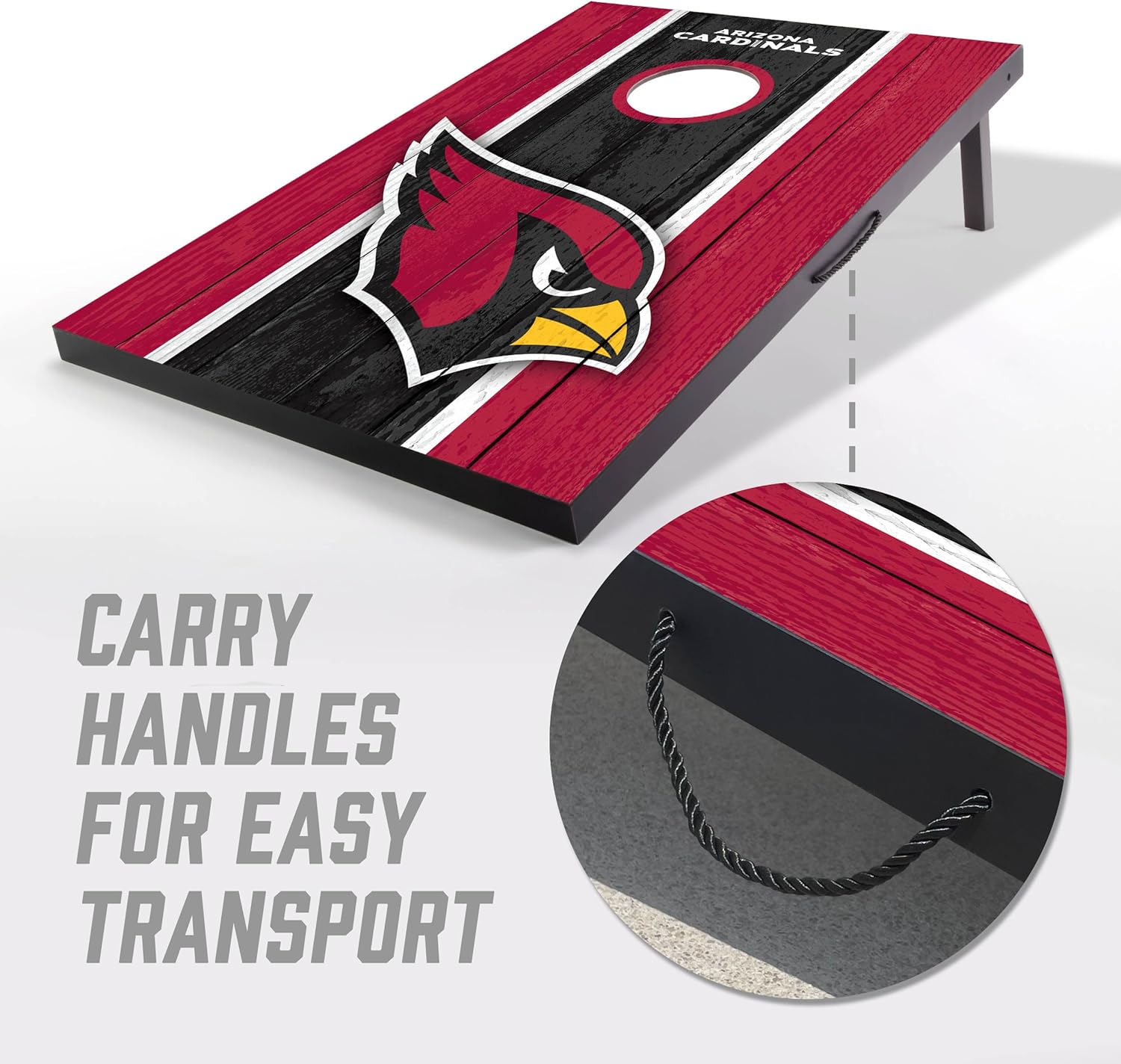 The MDF construction sets this apart from the rest! This cornhole game set wins on quality construction and performance. The compact 2’x3’ all-wood board features striking team graphics printed directly on the surface for long-lasting durability. It’s what every game-day party needs!