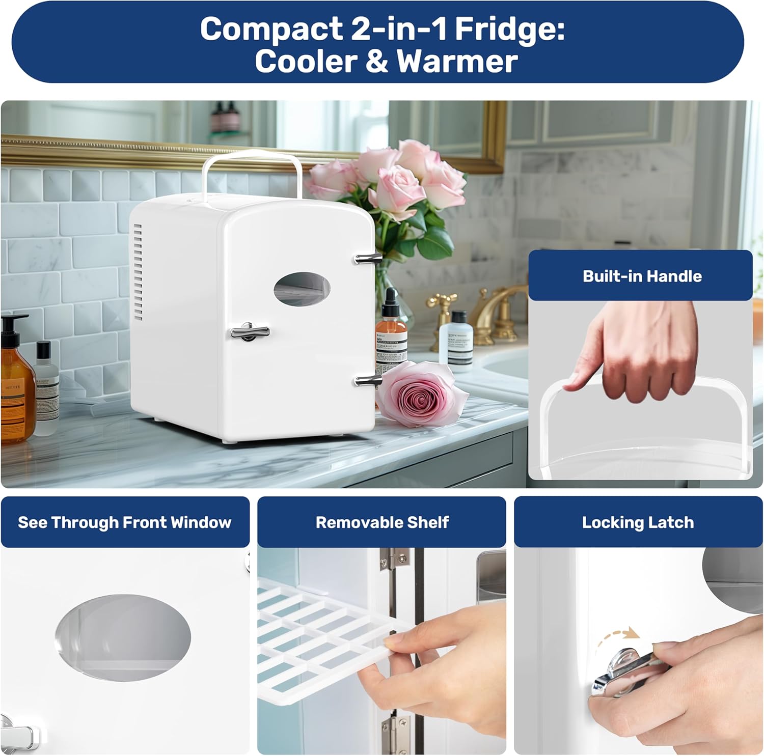 YSSOA 4L Mini Fridge with 12V DC and 110V AC Cords, 6 Can Portable Cooler & Warmer Compact Refrigerators for Food, Drinks, SkinCare, Office Desk, Bedroom, Dormitory, Car.