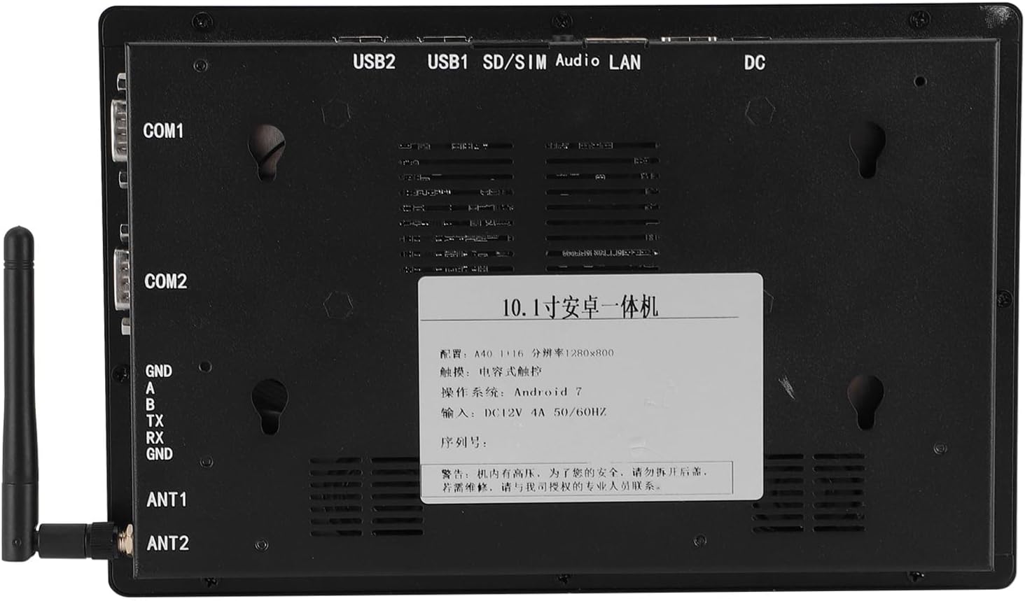 Spec: Item Type: Industrial Touchscreen Display Material: Aluminum alloy Screen Size: 10.1 inch Resolution: 1280x800 Aspect Ratio: 16:9 Backlight Brightness: 600 nit Backlight Life: 50000Hrs Viewing Angle (CR>10): Full view Touch Type: Capacitive touchscreen Response Time: 8ms Operating System: for Android 7.1.1 CPU: for Allwinner A40I, for Cortex A7 architecture, 1.2Ghz Memory: DDR3 1GB, EMMC FLASH 16GB Fidelity: Built in fidelity module Memory Card: Supports 32GB small memory card (not included) How to Use: Simply plug in and connect to use Package List: 1 x Capacitive 1 x Fidelity Antennae 1 x Plug 4 x Clips 4 x Screws