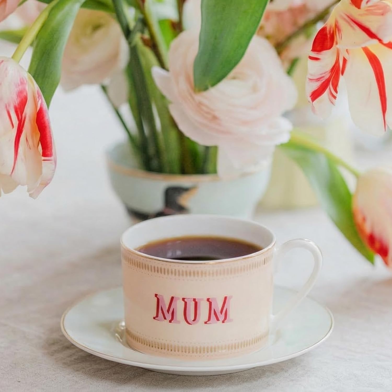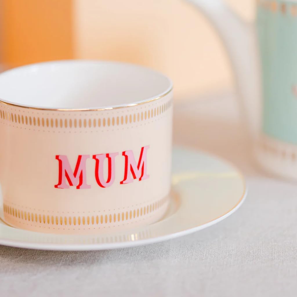 Add a touch of charm to your daily ritual with the Yvonne Ellen Mum Teacup & Saucer. Designed with soft pastel tones, delicate gold detailing, and a sweet sleeping mouse illustration on the saucer, this set beautifully blends playful character with vintage-inspired elegance. It’s a thoughtful and stylish choice for gifting, or a special treat for yourself. Crafted from premium bone china, this teacup and saucer set offers a luxurious feel with a lightweight yet durable finish. The fine porcelain construction enhances the drinking experience, maintaining the temperature of your tea or coffee while providing a smooth, refined touch with every sip. With a 250ml capacity, it’s perfectly sized for everything from a comforting cup of tea to a creamy cappuccino. Designed for both everyday use and special occasions, this versatile cup and saucer set brings sophistication to any setting. Whether you’re hosting guests or enjoying a quiet moment, the elegant silhouette and coordinated saucer create a polished presentation that complements any kitchen or tableware collection. Beautifully presented in a gift box, this set makes an ideal present for mums, tea lovers, or anyone who appreciates fine ceramics with a unique twist. Measuring 16cm x 16cm x 7cm, it offers a balanced and comfortable design for easy handling. To preserve its quality and delicate detailing, hand wash only is recommended. Wash in warm soapy water and dry thoroughly before first use. Not suitable for dishwasher or microwave use.