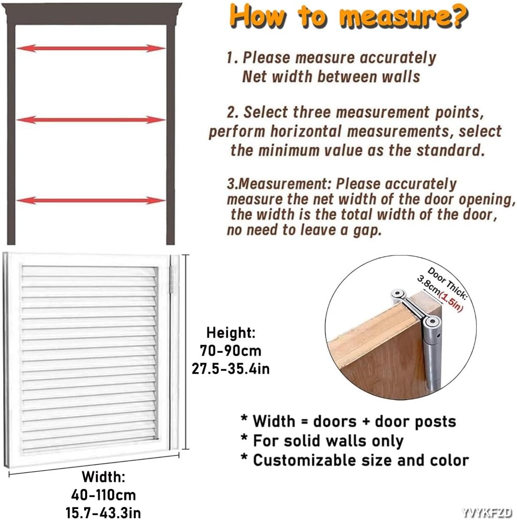 Welcome to YVYKFZD store:- Due to its half-waist design, the cafe swinging doors takes up only a small amount of wall space, making it suitable for small rooms or narrow walkways. At the same time, it is able to subtly separate spaces without affecting the overall spatial layout- Please accurately measure the net width of the door opening, the width we provide is the total width including the door post, no need to leave a gap by yourself. If you need other sizes or colors, please feel free to contact us● Product Parameters:- Product name: Fence door, partition door, front door, half-waist door, cowboy door, bar door, free door, half door, barn doors, double doors, louvered door- Material: Solid Wood- Assembly Required: Yes- Mount type: Door-mounted- Opening and Closing Range: 180°- Product size: W: 40~110CM/15.7~43.3IN, H: 70~90CM/27.5~35.4IN- Door Thickness: 3.8CM/1.5IN● Package Content:- Single Swing Door- Doorpost- Hinges (All Install Fitting Included)● Note:- Due to variations in screen settings, there may be slight color differences. Please refer to the actual product for accurate color representation- Due to different measurement methods, the error is generally 1-2 cm, and the error range is not within the quality range