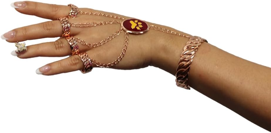 Juleka Couphèneis Luka’s twin sister and Rose’s best friend. The latter both know that, behind her goth look and her lack of self-confidence, Juleka is extremely talented. She’s the real rock star of the band Kitty Sectionandof the Couphène family. Juleka is the holder of the Miraculous of the tiger, which grants the power of elation. With the help of her kwami Roarr, she transforms intoPurple Tigress.Copper pink gold platedRings and bracelet are adjustableBracelet width: 1" / 13,5mmRings width: 0,5" / 8,5mmBracelet chain : 1,5" / 39mmRings chains : 1,18" / 30mm