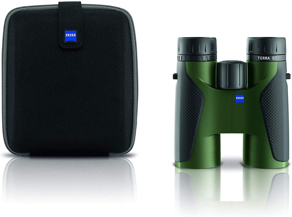ZEISS TERRA ED 10x42 BINOCULARS - IDEAL FOR STALKING/DAYLIGHT HUNTING, OUTDOOR/LEISURE, BIRDWATCHING/WILDLIFE OBSERVATION, HIGH SEAT/NIGHT ZEISS Terra ED binoculars are robust, reliable and easy to use. Their state-of-the-art and sleek design makes them not only light but comfortably compact. The highest optical precision and the hydrophobic multicoating guarantee brilliant images down to the very last detail. The Terra ED binoculars are waterproof and nitrogen-filled, making them rough and ready. Terra ED binoculars are excellent value for money, making them the perfect entry into the world of ZEISS. A bright image, outstanding resolution of details and comfortable viewing characteristics. In combination with optimum ease of handling, these perfectly describe the outstanding properties of the Terra ED 42. Performance: Magnification: 10 ? Effective lens diameter: 42 mm Exit pupil diameter: 4.2 mm Twilight factor: 20.5 Field of view at 1,000 m: 110 m (361 ft) Subjective viewing angle: 60 Close focusing distance: 1.6 m (5.3 ft) Diopter adjustment range: ? 3.0 | + 3.0 dpt Exit pupil distance: 14 mm Pupil distance: 58 - 75.5 mm Lens type: ED Prism system: Schmidt-Pechan Features: LotuTec | Nitrogen filled: - | + Water resistance: 100 mbar Physical: Operating temperature: ? 15°C | + 60°C (+ 5°F | + 140°F) Length: 142 mm (5.6") Width at an interpupillary distance of 65 mm: 120 mm (4.7") Weight: 725 g (25.6 oz)