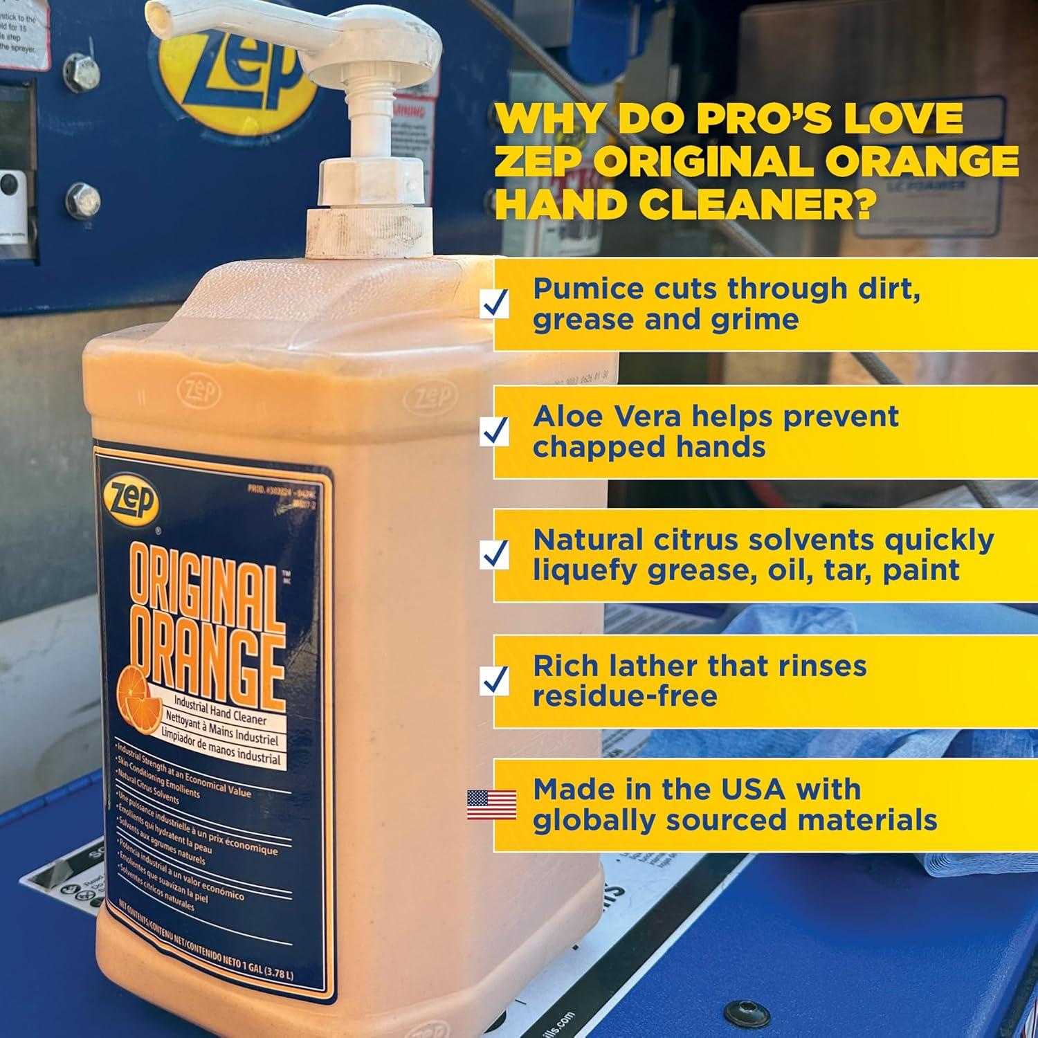 This heavy duty hand soap uses a biodegradable orange solvent, with fine abrasive pumice to tackle the toughest grease and dirt.