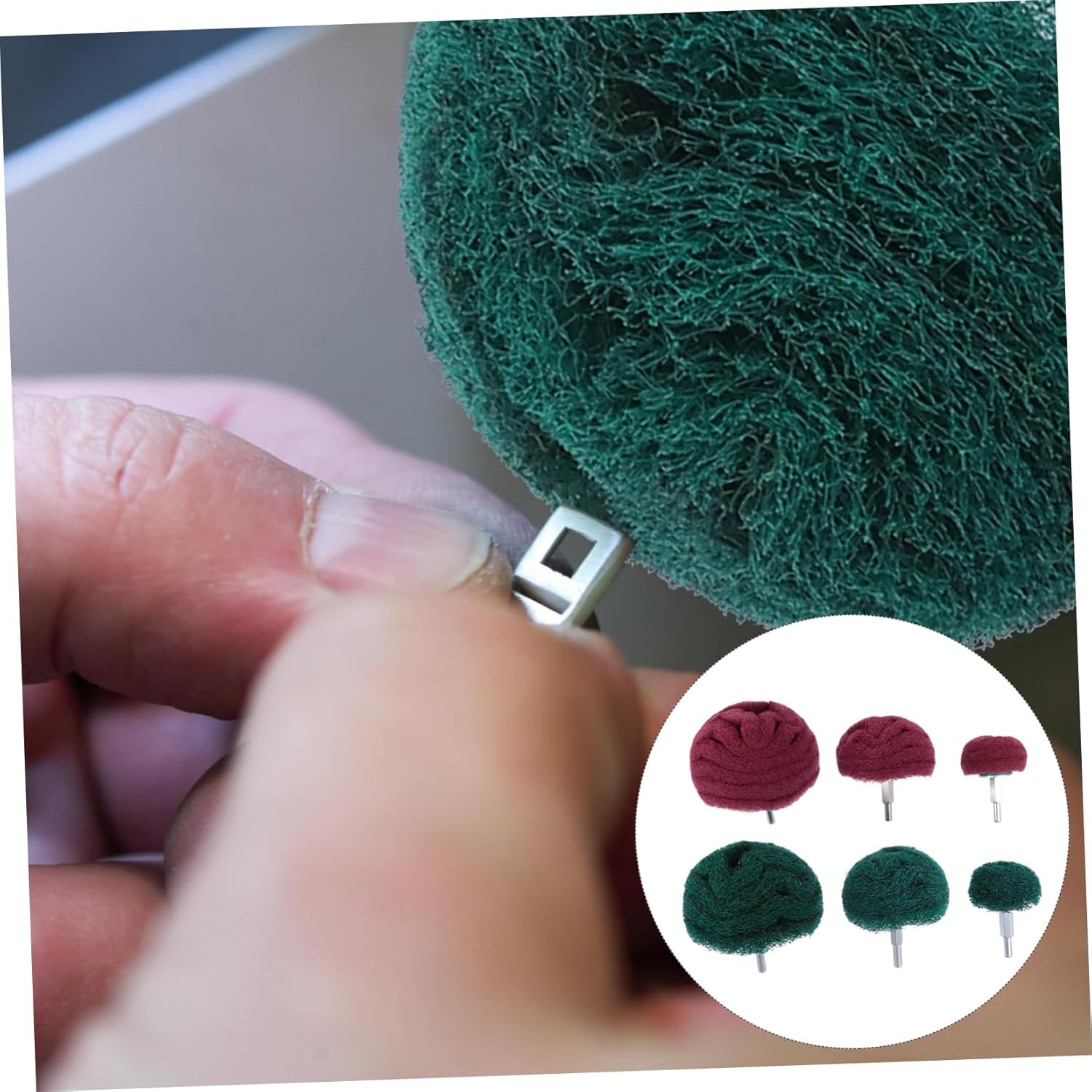 Package List 2 x50mm red polishing wheel 1x75mm red polishing wheel 1x100mm red polishing wheel 1x50mm green polishing wheel 1x75mm green polishing wheel 1x100mm green polishing wheel Features - Color: red green Scouring Pad Sanding Head. - Material: Scouring pad Abrasive Wheels. - Size: About 10. 00X10. 00X7. 00cm Polishing Wheels - The polishing wheel enables you to achieve a smooth, uniform finish and uniformity of irregular surfaces with minimal stains Polishing Buffing Wheel. - Used for polishing all kinds of metal and wood Abrasive Wheel. - Suitable for your polishing needs, used for small area derusting, deburring and surface polishing of all kinds of metal jewelry and non- metallic materials Polishing Wheel. / 3. 93X3. 93X2. 75inch Polishing Brush Parts. - Small polishing wheel is an efficient metal polishing tool with the advantages of small volume, high efficiency and Sanding Head. - It is widely used in devices and industries Rotary Tool Accessories.Goods DescriptionPolishing Wheels It can be used for metal grinding and polishing, and practical.Abrasive Wheels These are the scouring pad grinding wheels for rotating tool parts of electric grinding machine.Abrasive Wheel The six polishing wheels are used for DIY carving, grinding and polishing ( wood, metal and stone polishing purposes )