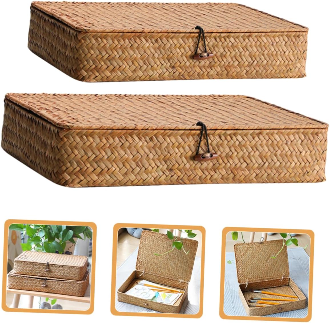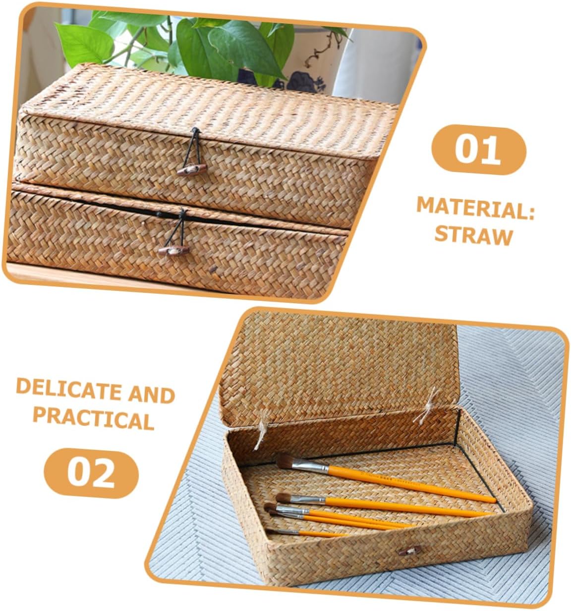 Package Include 2 x Woven Baskets (2 sizes) Features - Size: 30.00X22.00X6.50cm/11.79X8.65X2.55in small baskets for -Material:Straw basket for toilet paper - Size: 32.50X28.00X7.50cm/12.77X11.00X2.95in storage basket with lid -Color:Khaki decorative storage baskets - Straw woven baskets are solid in construction, workmanship, carefully crafted for lasting use basket with lid decorative storage. - woven baskets are versatile, can be as daily sundries box, or as box for special occasions organizing baskets for shelves. - Woven baskets meet different needs for daily life. Fine weaving for both beauty and practicality storage basket for shelves. - You can use woven baskets to store cosmetics, toiletries, and other items you want to keep storage baskets woven. - Multi-functional storage for a tidy desktop, convenient for transportation, ideal to use as storage baskets for home baskets for shelves.Goods Informationstorage basket with lid Proper size, woven baskets are stackable, won't take up much space.baskets for shelves Woven baskets for storage are made of straw material, which is for use.shelf baskets Woven baskets are a great on christmas, birthday or other , beautiful and