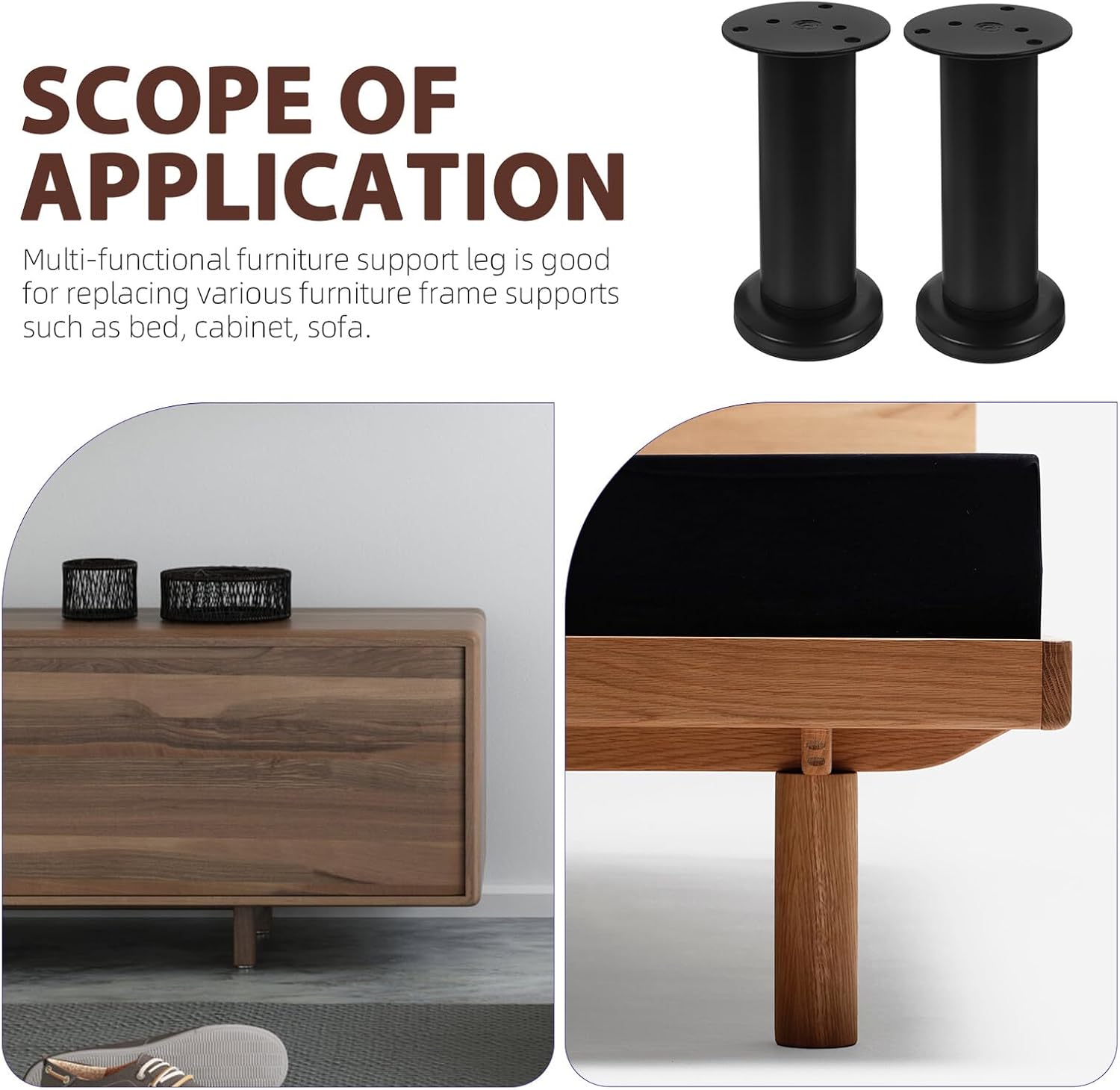 Package List 4 x Bed Leg Supports Characteristics - Size: 12.00X6.50X6.50cm/4.72X2.55X2.55in - Color: Black -Product Info:Furniture legs -Material:Steel -Adjustable range:12-18cm bed support leg - Provides support, preventing your bed frame from sagging or shifting. Quickly installation, convenient bed frame support legs. - Achieve the perfect mattress height with adjustable legs. Could meet your different using needs easily. legs for furniture - Made from good materials, durability and resistance to deformation. Very sturdy and useful. - Adjustment design of these bed legs enhances stability, ensuring solid and reliable bed frame bed frame accessory. - The adjustable height range is large, load bearing capacity of the furniture legs is strong, can longtime use adjustable support feet.Goods Informationleg for furniture If you are looking for some bed legs replacement for bed frame center support, then our bed reinforcement kit can meet your demands.replacement legs for bed frame Made of sturdy materials, practical and durable, not easy to deform, support long term of use.furniture replacement legs The support leg is suitable for bed frame, sofa, cabinet and other furniture you need