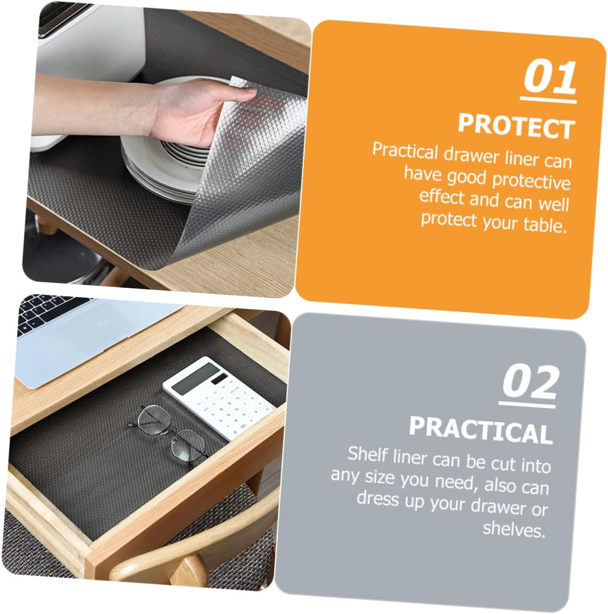 Package List 1 x Shelf Liner Features - Size: 150.00X60.00X0.10cm/58.95X23.58X0.04inch Drawer Liner for Home. - Material: EVA Shelf Liner. - Made of high-grade material, and , easy to clean, long serving life Protective Kitchen Cabinet Liner. - Suitable for shelf, kitchen cabinets, wardrobes, drawers, bookshelves and other places Non-slip Shelf Liner. - , oil-proof and waterproof, the drawer liner is useful and Drawer Liner. - It can be cut at will and used flexibly, can easily meet your different needs Protective Drawer Liner. - Making the home environment more tidy and , very convenient to use Non-slip Drawer Liner.Goods InformationProtective Kitchen Cabinet Liner For proper sizes and simple shapes, you can simply trim the liners to get the liner you need.Non-adhesive Cabinet Liner Easy to clean, convenient maintenance and use.Protective Shelf Liner Also can be used for home cabinet and drawer.Cabinet Liner Our cabinet liner is light, and waterproof,