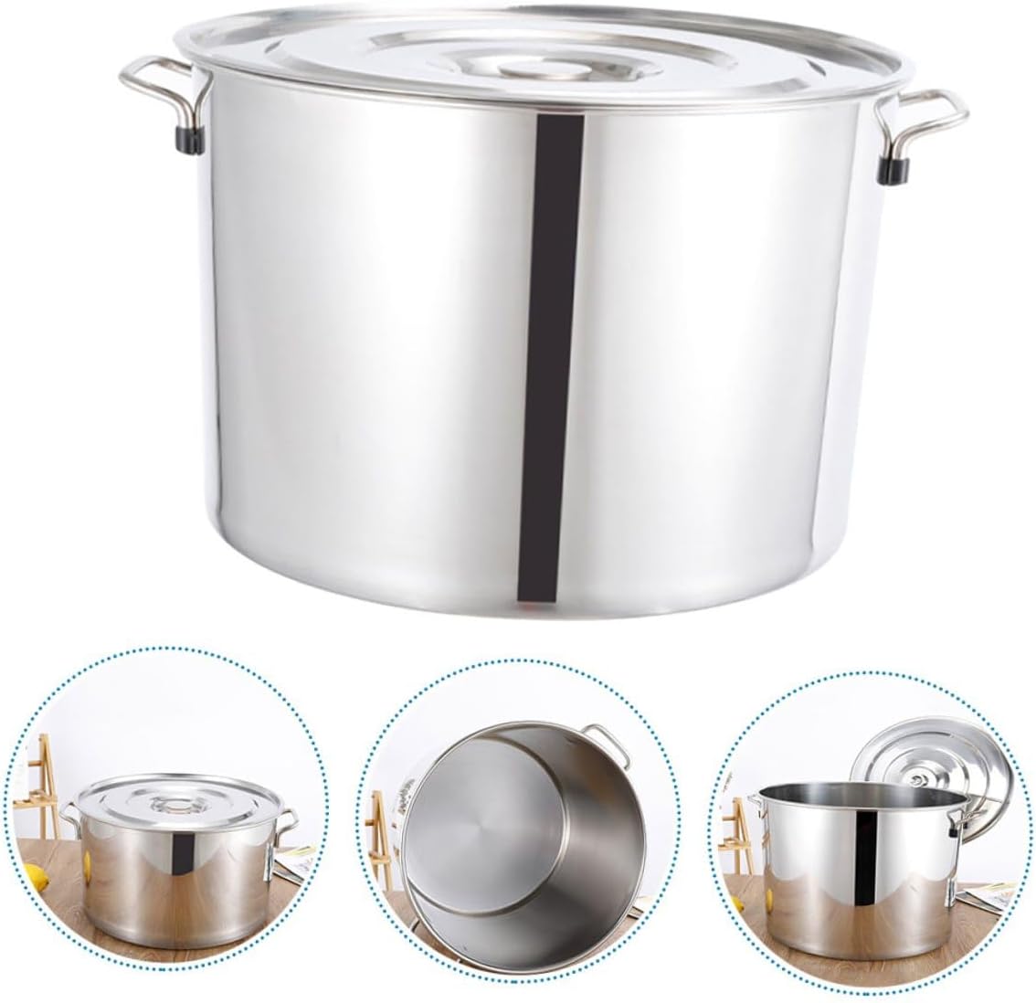 Package Include 1 x Soup Pot (with Lid) Features -Product Info:Soup pot with lid -Material: Stainless steel. - The practical pot can be given to others as a wonderful Oil Storage Basin. - With two handles, this pot is convenient and easy to pick up it and don't have to worry about getting burned. Large Capacity Stockpot - The rustproof pot has and can be used for a long time Soup Pot. - Features multipurpose, it can be used as a storage pot to store porridge, rice, soup, vegetables and other foods, and also can be used as a pot to cook food Rustproof Pot. - Made of stainless steel material, for use.Goods InformationLarge Capacity Stockpot Features multipurpose, it can be used as a storage pot to store porridge, rice, soup, vegetables and other foods, and also can be used as a pot to cook food.Multipurpose Pot With two handles, this pot is convenient and easy to pick up it and don't have to worry about getting burned.Kitchen Supplies This is a multipurpose pot, which is made of stainless steel material, for use