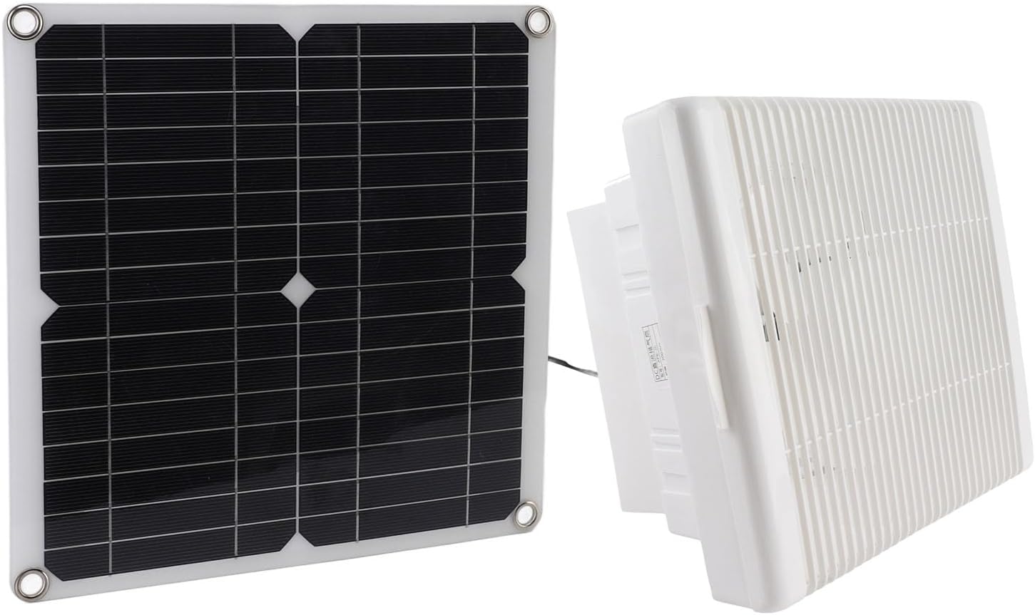 [Dual Functionality] This versatile solar fan serves both as a powerful cooling fan and an effective exhaust fan. it efficiently circulates air to reduce heat and humidity making it perfect for maintaining a comfortable environment in chicken coops greenhouses and other enclosed spaces. [High Efficiency Solar Power] Made of premium monocrystalline silicon and equipped with advanced lithium batteries this solar fan kit maximizes solar energy conversion to deliver a long lasting and reliable cooling experience. enjoy uninterrupted airflow even during cloudy days thanks to its efficient energy storage system. [Powerful Performance] With a maximum power of 12w and a current of 1a this solar fan delivers strong wind to effectively lower temperatures and provide air. its 3500rpm speed ensures rapid air circulation for optimal ventilation in any setting. [Reliable Outdoor Use] Designed for outdoor and off grid environments this fan operates on a stable 12v dc power supply. its durable construction and ip67 rating make it ideal for camping farming and other outdoor activities where power sources are limited. [Easy to Use] This solar fan kit includes a convenient battery case that allows operation without direct sunlight. simply install three lithium batteries (not included) and enjoy continuous airflow day and night. the 15ft cord provides flexibility in placement. Spec: Item Type: Solar Fan Material: ABS+Monocrystalline Silicon Battery: 3 x Lithium battery, (not included) Maximum Power: 12W Open Circuit Voltage: 14V Maximum Power Voltage: 12V Short Circuit Current: 1.3A Maximum Power Current: 1A Output: DC Weight: Approx. 1299.00g / 45.82oz Package List: 1 x Battery Box 1 x Connection Cable 1 x Solar Panel 1 x Fan
