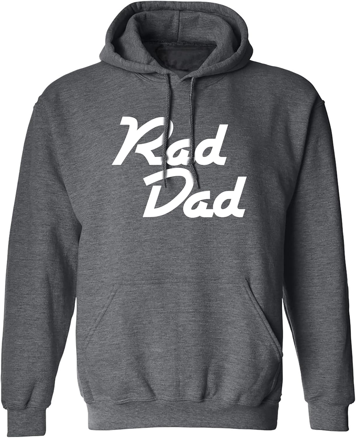 This sporty hoodie features "RAD DAD" on the front on an Adult Hooded Sweatshirt. Made with a comfortable blend of 50% Cotton and 50% Polyester with a double lined hood, matching drawstring and front pockets.