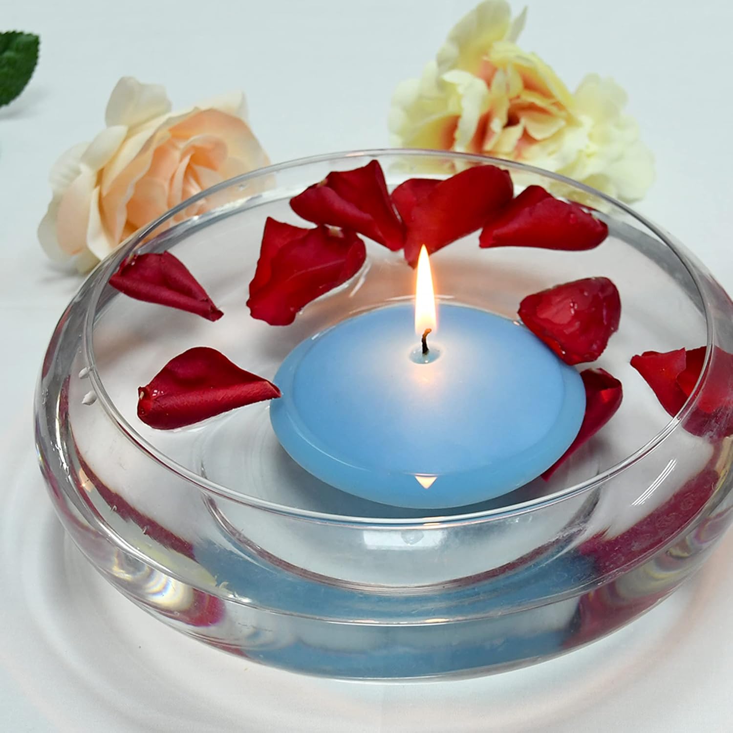 100% Hand poured; Extra large round turquoise floaters are a must for events such as housewarmings and weddings. Illuminate these floaters on waters to maximize the atmosphere. These unscented floating candle discs burn exceptionally long and have solid color all the way through. PLEASE NOTE: Actual color may differ from the color shown in the image(s) due to monitor displays.
