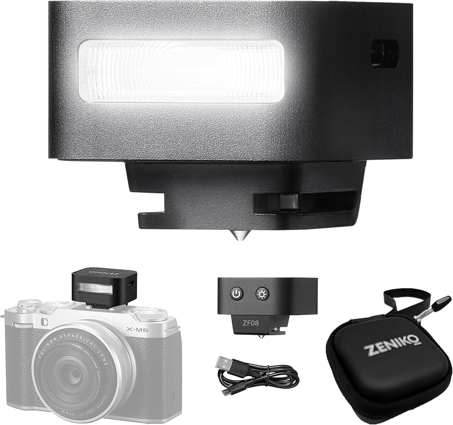 | BuiltIn Media | 1 x USB Cable, 1 x User manual, 1x Carrying bag, 1x Zeniko ZF08 Camera flash speedlite (Black) |