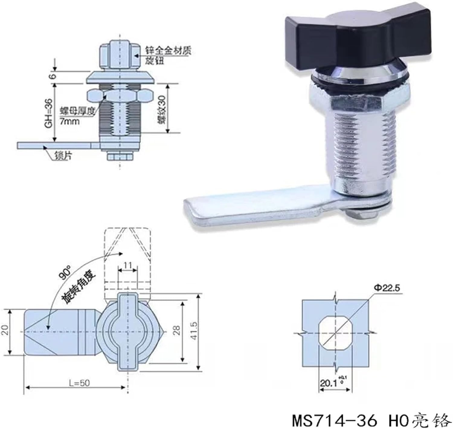 Gate LocksZinc Alloy Quarter Turn Cam Locks For Mail Boxes Lock Cabinet Boxes Head Wing Cam Lock Type 1Pcs