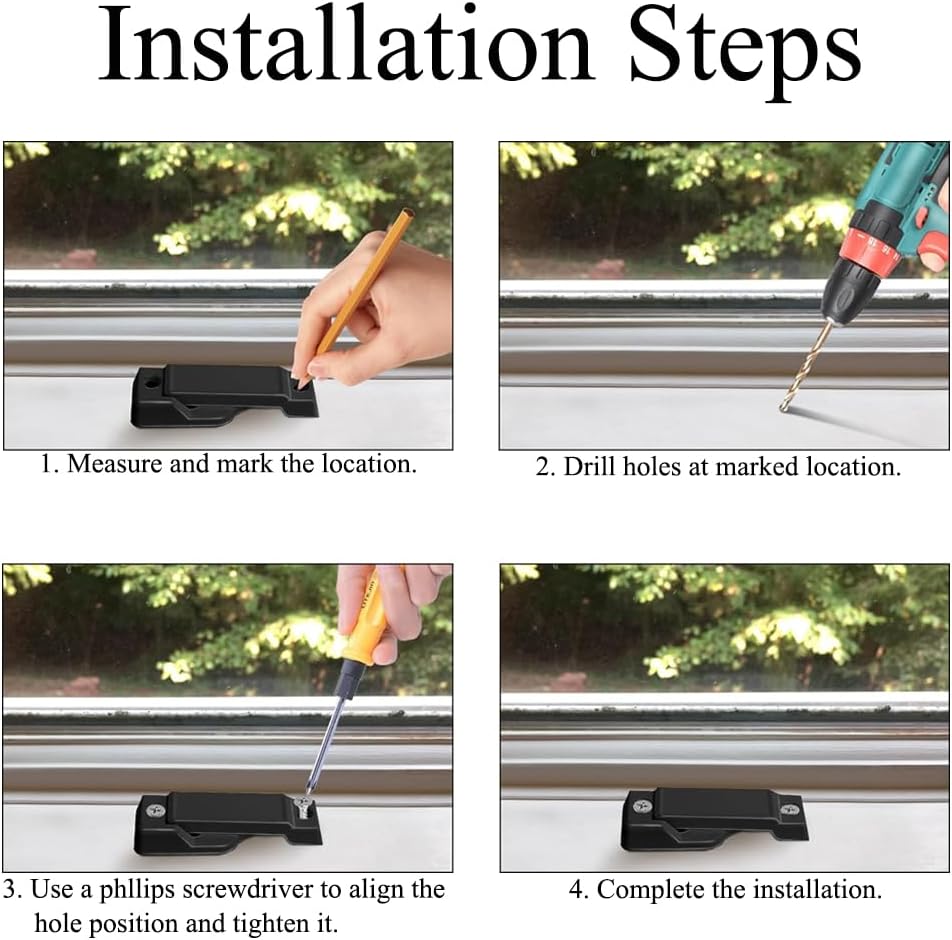 Specification: Material: Zinc Alloy Color: Black, White Quantity: 4 PCS, 8 PCS Size: 72*20*8mm/2.83*0.78*0.31in Note: Please allow for manual measurement error. Package Included: 20 PCS * Windows Replacement Sash Locks