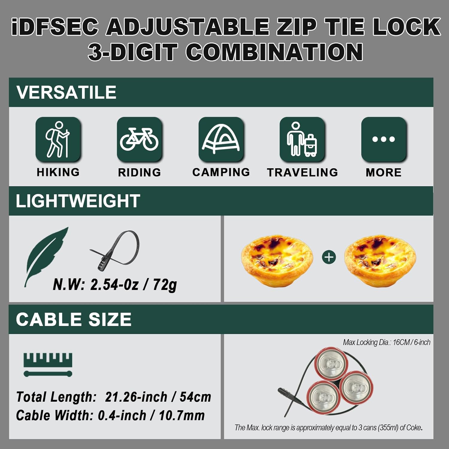 | Included Components | iDFSEC 3-Digit zip tie lock x4, Small flat screwdriver x4 |