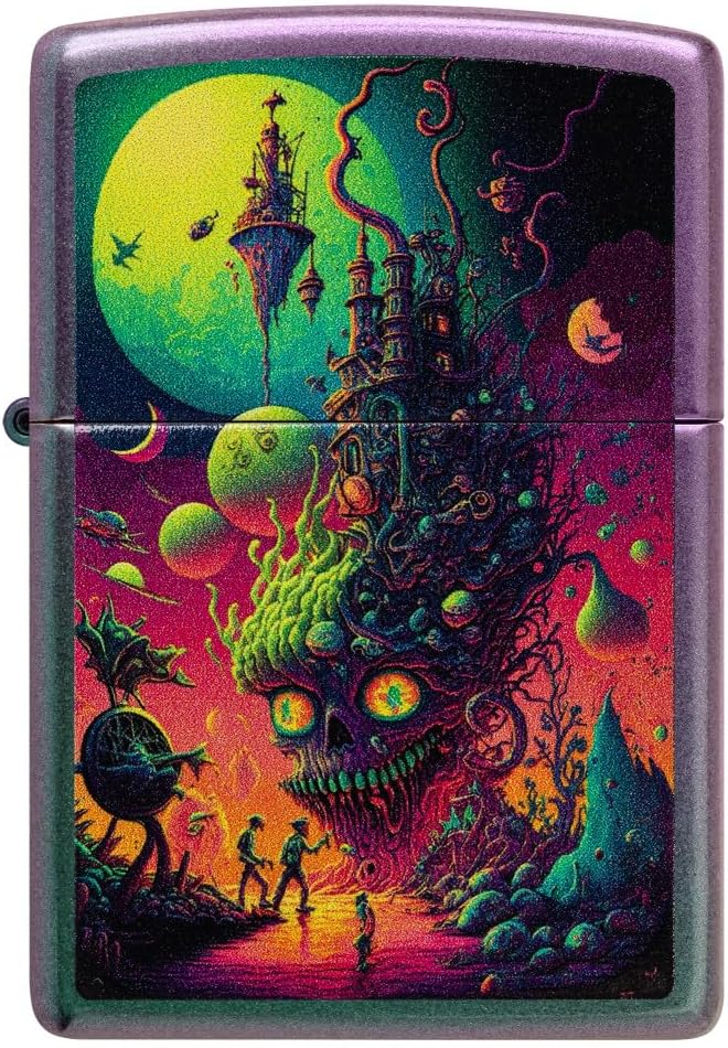 Vivid colors, abstract shapes and trippy images make up this new collection in the Psychedelic Zippo Lighter group. You will find beautiful and unique lighters created with the Color Image process on beautiful base models like Black Matte and Iridescent. Each lighter has a bottom stamp signifying the year it was made and are refillable. All windproof lighters are American made in our Bradford, PA factory and come packaged in a gift box.