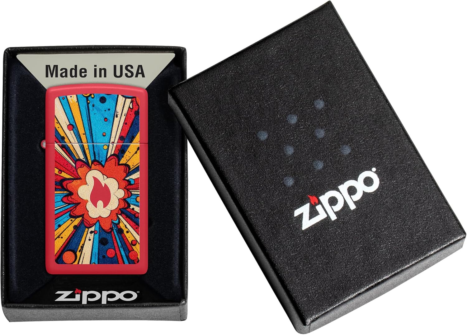 The lighters in this collection each have the highly recognizable Zippo logo on them. Using various lighter finishes, models, and imprint methods the Zippo logo stands out in interesting ways. The Zippo logo lighters collection features color imaging, laser engraving, auto engrave, deep carve, stamping, and emblem attachments that have been applied to several different lighter cases such as Red Matte, Black Matte, Brushed Chrome, High Polish Brass, High Polish Chrome, Black Ice, and Antiqued Brass. Each lighter has a bottom stamp signifying the year it was made, is refillable, and backed by Zippo’s famous lifetime guarantee. All windproof lighters are American made in our Bradford, PA factory and come packaged in a gift box.