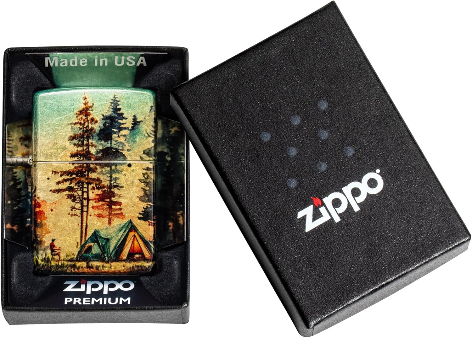 Several Zippo lighters in our outdoor collection are designed for easy and safe use when outdoors. The Brushed Chrome lighters include Zip Guard Wraps and metal and elastic lanyards. Other designs are created from the inspiration of the outdoors. Those designs incorporate the following imprint methods; color imaging, engraving, and emblem. Finished on Brushed Chrome, Black Ice, High Polish Chrome, Neon Orange, Satin Chrome and White Matte. Each lighter has a bottom stamp signifying the year it was made, is refillable, and is backed by Zippo’s famous lifetime guarantee. All windproof lighters are American made in our Bradford, PA factory and come packaged in a gift box.