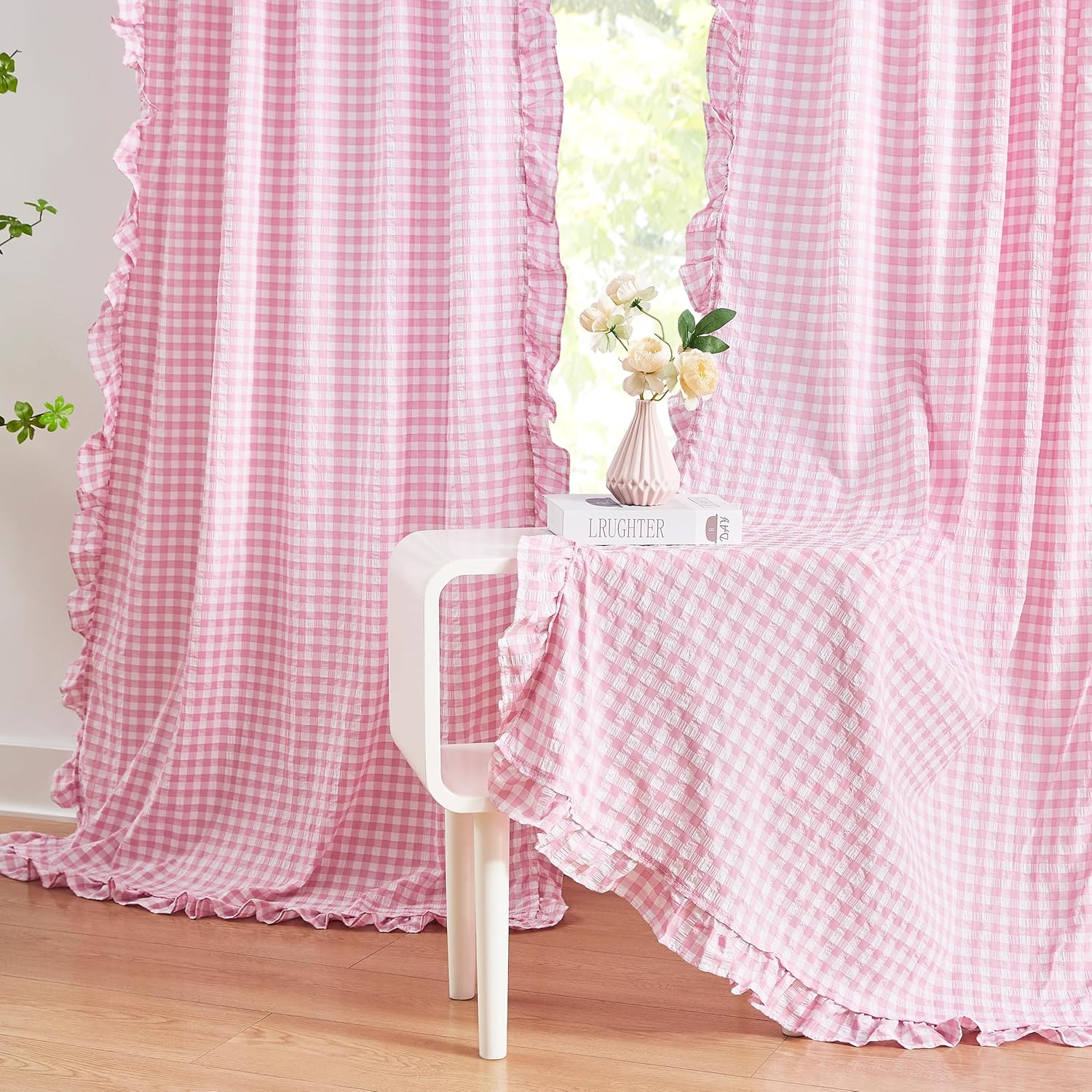 | Theme | Woven Crinkled Buffalo Plaid Semi Sheer Window Curtains with Ruffle Edges |