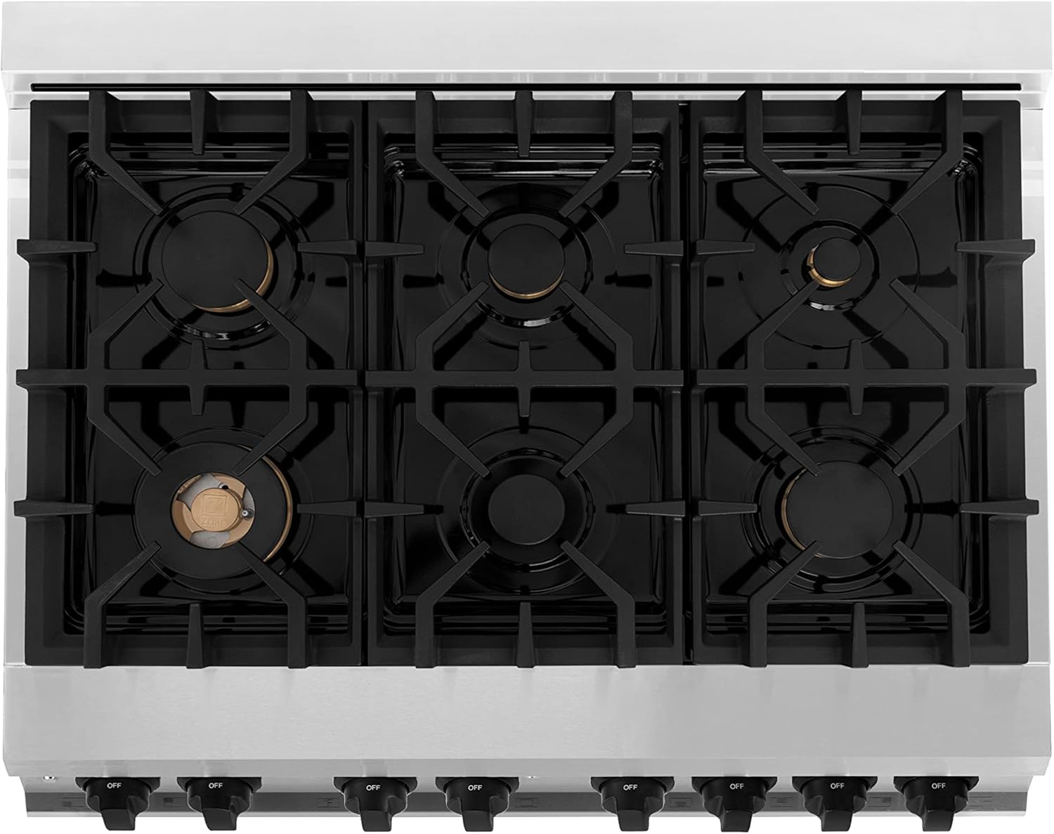 Luxury isn’t meant to be desired - it’s meant to be attainable. The ZLINE Autograph Edition 36 in. 4.6 cu. ft. Legacy Dual Fuel Range with 6 Burner Gas Cooktop and Electric Convection Oven in Stainless Steel and Matte Black Accents (RAZ-36-MB) pairs a powerful gas cooktop with 6 Italian-crafted burners, an electric convection oven with a Landscape oven door window design, and elegant matte black knobs and handle. With innovative features designed to enhance your kitchen’s capability, ZLINE Legacy Dual Fuel Ranges provide a professional culinary experience by pairing unmatched performance with timeless style.