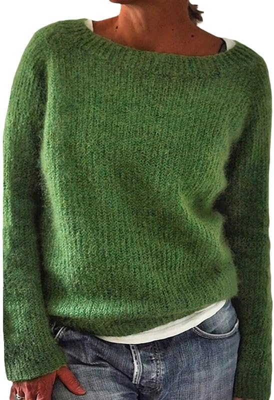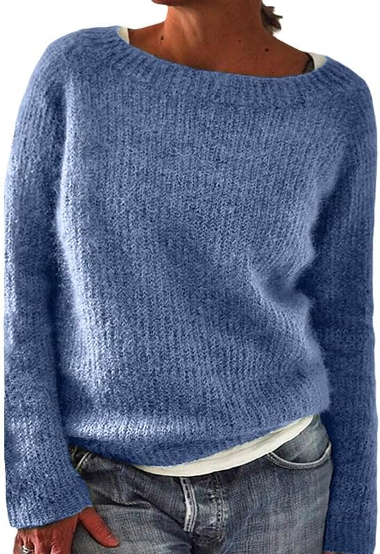 ZOCANIA Long Sleeve Sweaters for Women Crew Neck Knitted Sweater Solid Color Lightweight Women's Pullovers Oversized Casual Basic Fall Fashion Clothes