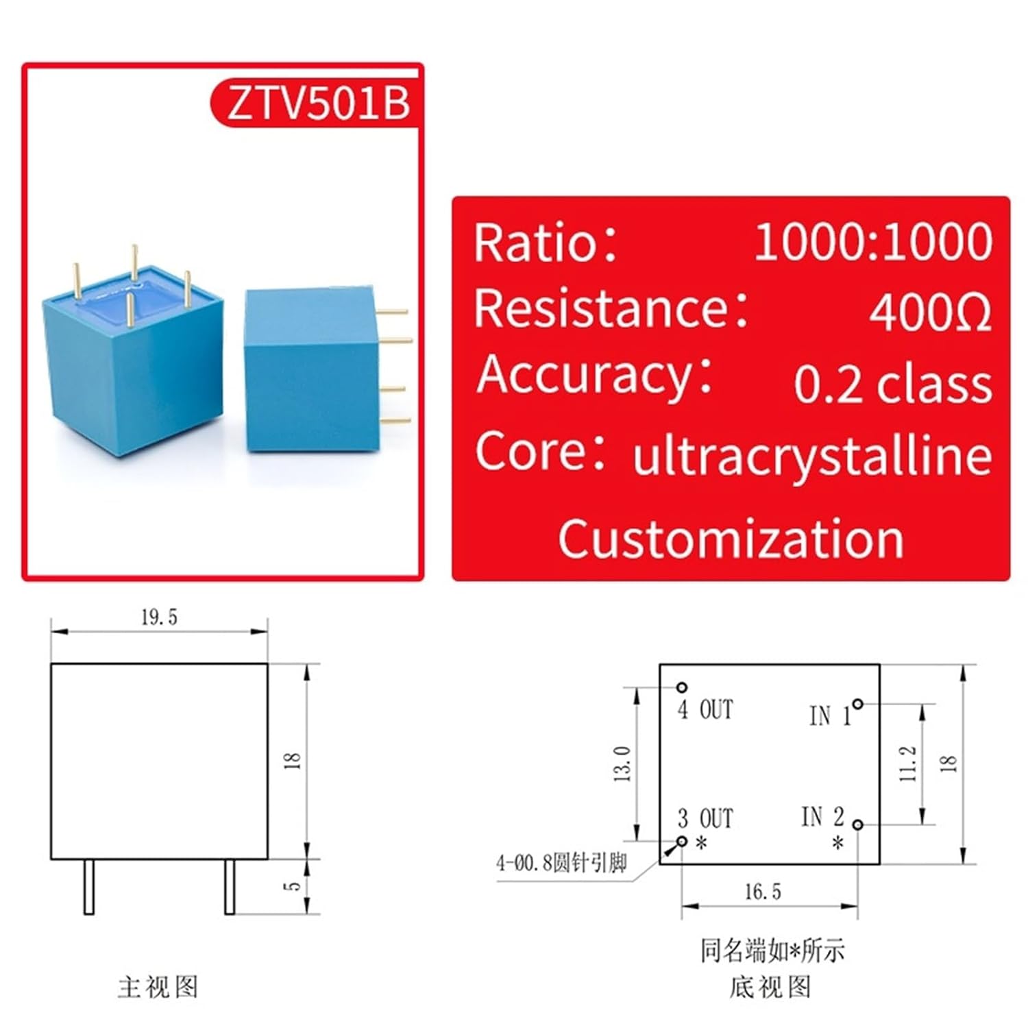 Sensor BlocksZtv501b 1ma/2ma Mini Mount Low Voltage Precision Potential Transformer 1PcsCoil Structure : ToroidalModel Number : ZTV501BCoil Number : AutotransformerPhase : SINGLEUse : PotentialProduct name : ZTV501BType : PinFrequency : 45Hz-1250Hz