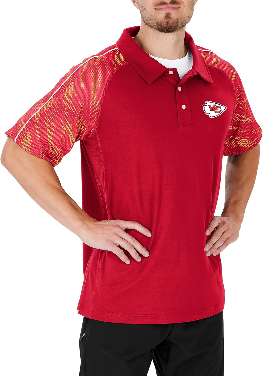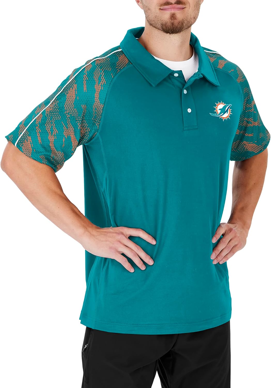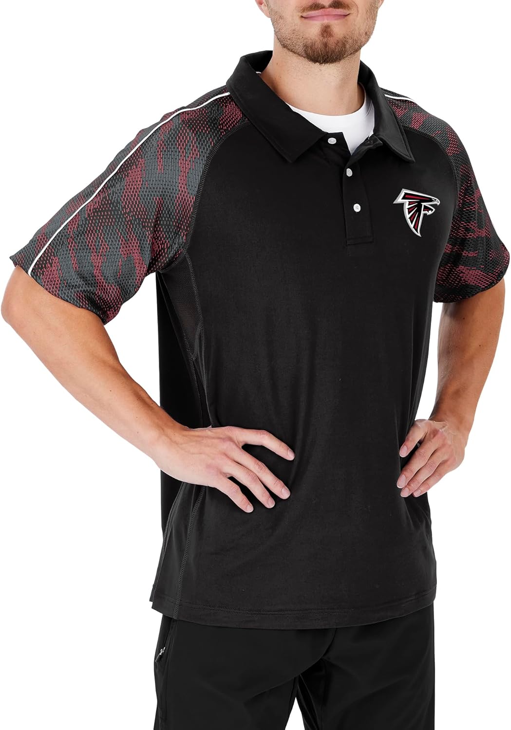 Pullover polo, team color viper print sleeves, Poly/Spandex, NFL team logo