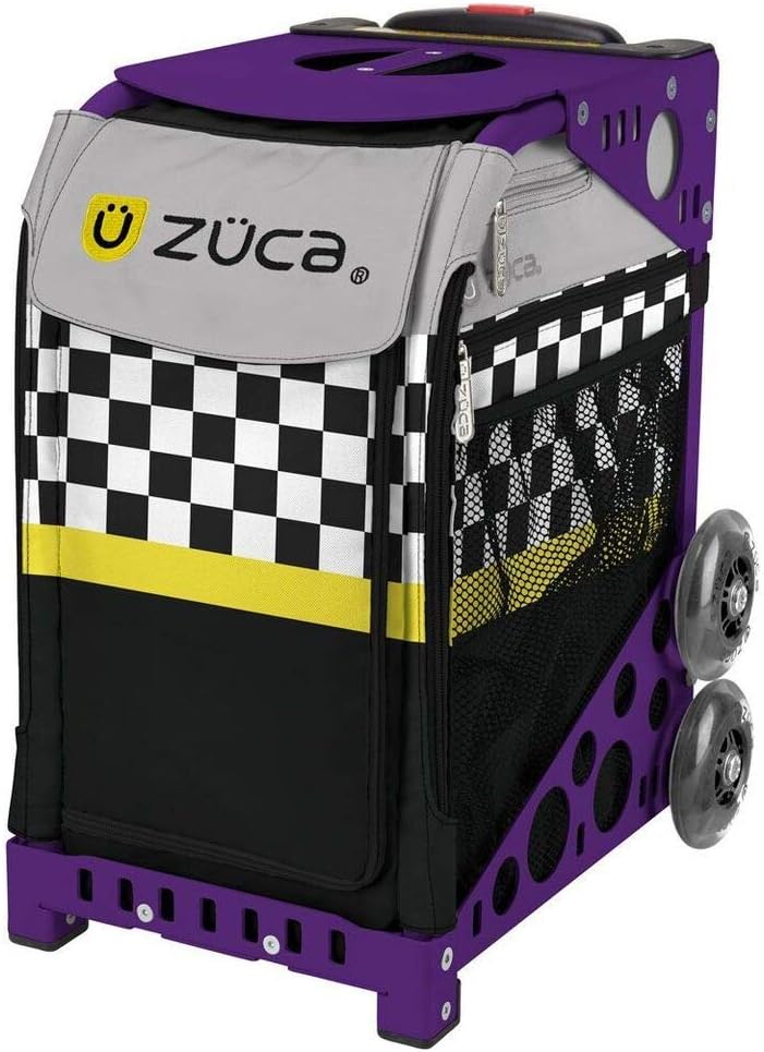 Zuca is a unique concept in bag design where you can mix and match durable insert bags with colored aluminum frames for a unique look that matches your personality and style. Inspired by aerospace technology, this durable aluminum frame redefines what a travel bag can be.Incredible Construction for Any ActivityThe insert bag is constructed from 600D water-resistant polyester and can withstand the rigors of everyday use. Kids will love it since it can easily store and transport all of their books, without straining their backs. Adults will love Zuca too, as it makes for a great travel companion on vacation or business trips. The interior is vinyl coated for added protection and the entire bag is machine and hand washable.Have a Seat – Anywhere!Think back at all of the lines and waiting you've had to do while traveling. Shuttle buses, airport gates, security lines...waiting is unavoidable and unfortunately it can last for hours on end! If you're on a line or in a jam-packed terminal, a seat is likely impossible to come by. The top of this frame can support up to 300 lbs. so don't be afraid of damaging your Zuca. Take a load off or use the super sturdy top to store and transport more gear.Unique Wheel Design – Roll Almost AnywhereAnother great feature of this Sport Frame are the dual 4" polyurethane wheels. Almost every bag has wheels, but these are mounted vertically to easily handle being dragged up stairs or over curbs. They also absorb shock, roll easily on most any surface. Two feet are built-in to keep the bag stable when not in motion and are constructed of Nylon 6 material. It's super durable yet gentle on easily scratched flooring. These wheels also have a cool flashing design with embedded LEDs.Bundle Includes:Zuca Sk8ter Block Sport Insert BagZuca Sport Frame