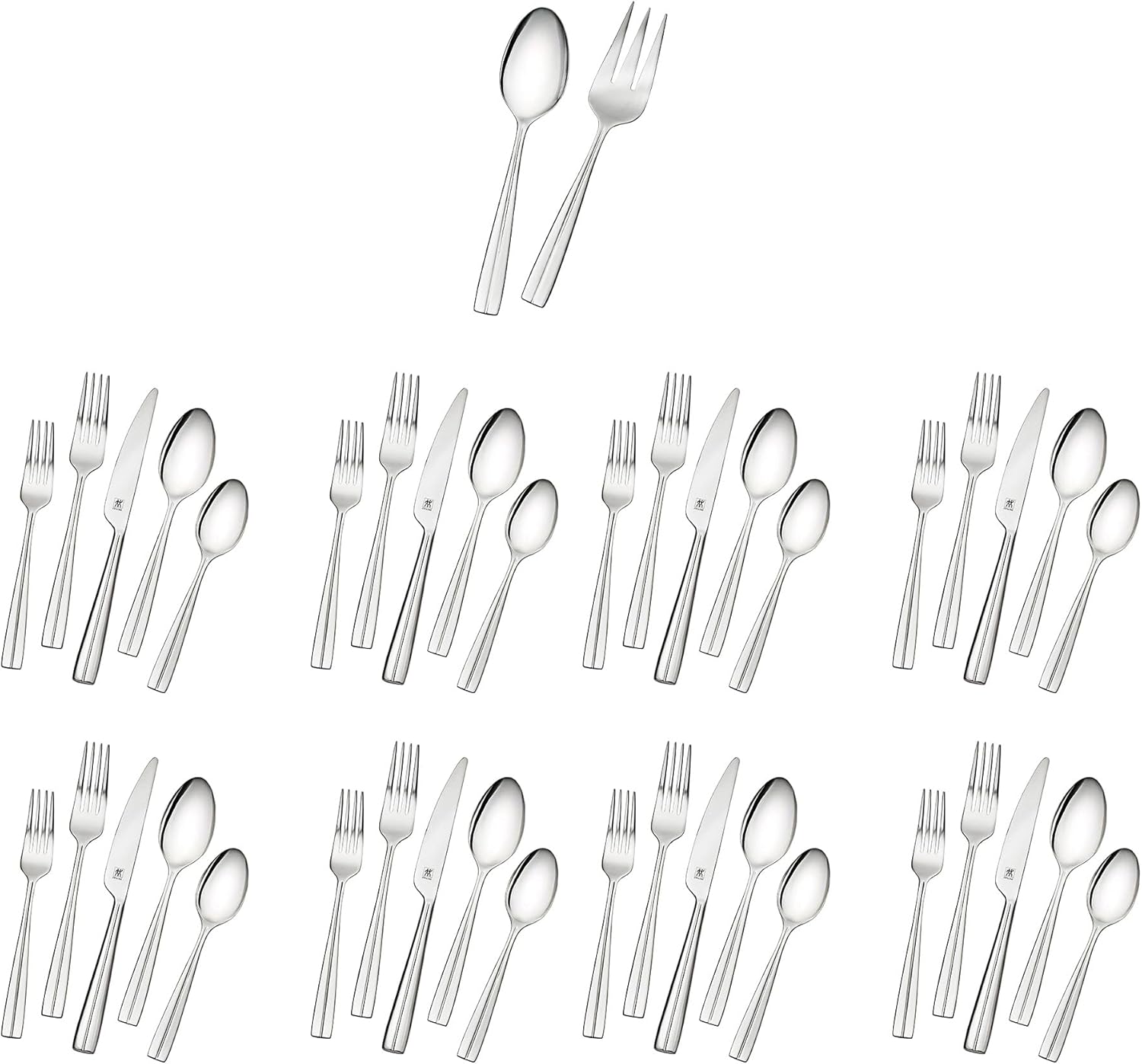 ZWILLING J.A. Henckels is recognized worldwide for products of high quality and distinctive design. Each pattern in the flatware collection is a testimony to the company's heritage with contemporary styling and European influenced design elements.Constance features a slender neckline which transitions to a beautifully contoured handle. The linear accent adds contrast and distinction. The highly polished mirror finish and contemporary styling ensure Constance will capture interest at every tablesetting.8- 5 Piece Place Settings plus a Serving Spoon and Serving Fork