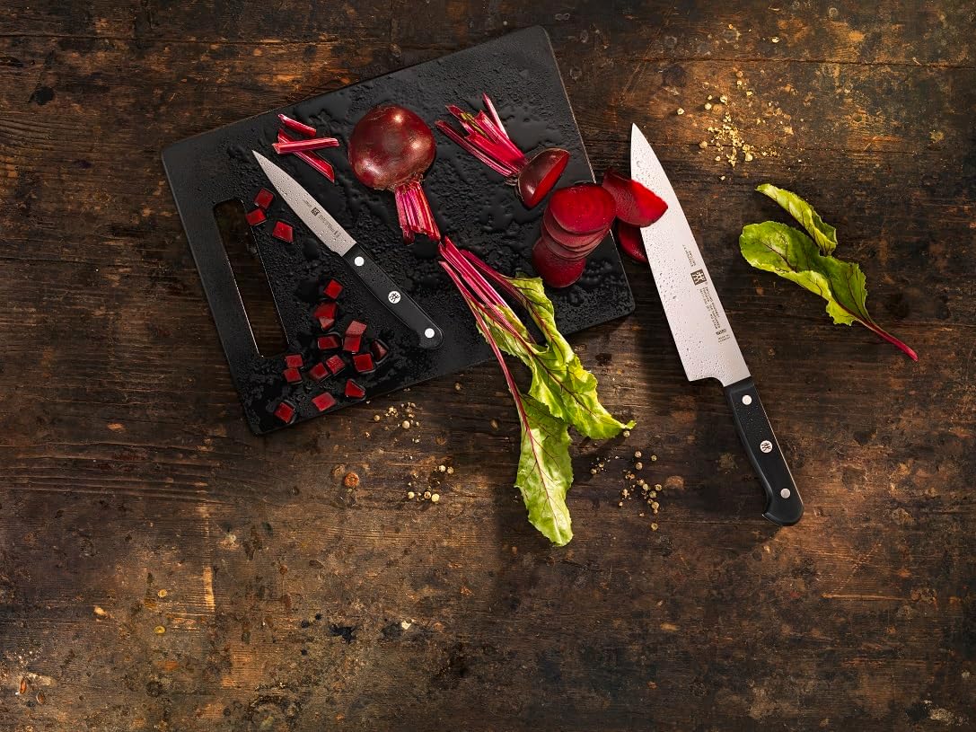 ZWILLING Gourmet Knife type: Paring knife, Blade length: 10 cm, Blade material: Stainless steel. Number of products included: 1 pc(s) Packaged -Number of products included: 1 pc(s) Features - Knife type: Paring knife. - Blade length: 10 cm. - Blade material: stainless steel. - Blade colour: stainless steel. -Handle colour: Black -Handle material: Plastic. - Ergonomic handle: Yes -Country of origin: Germany