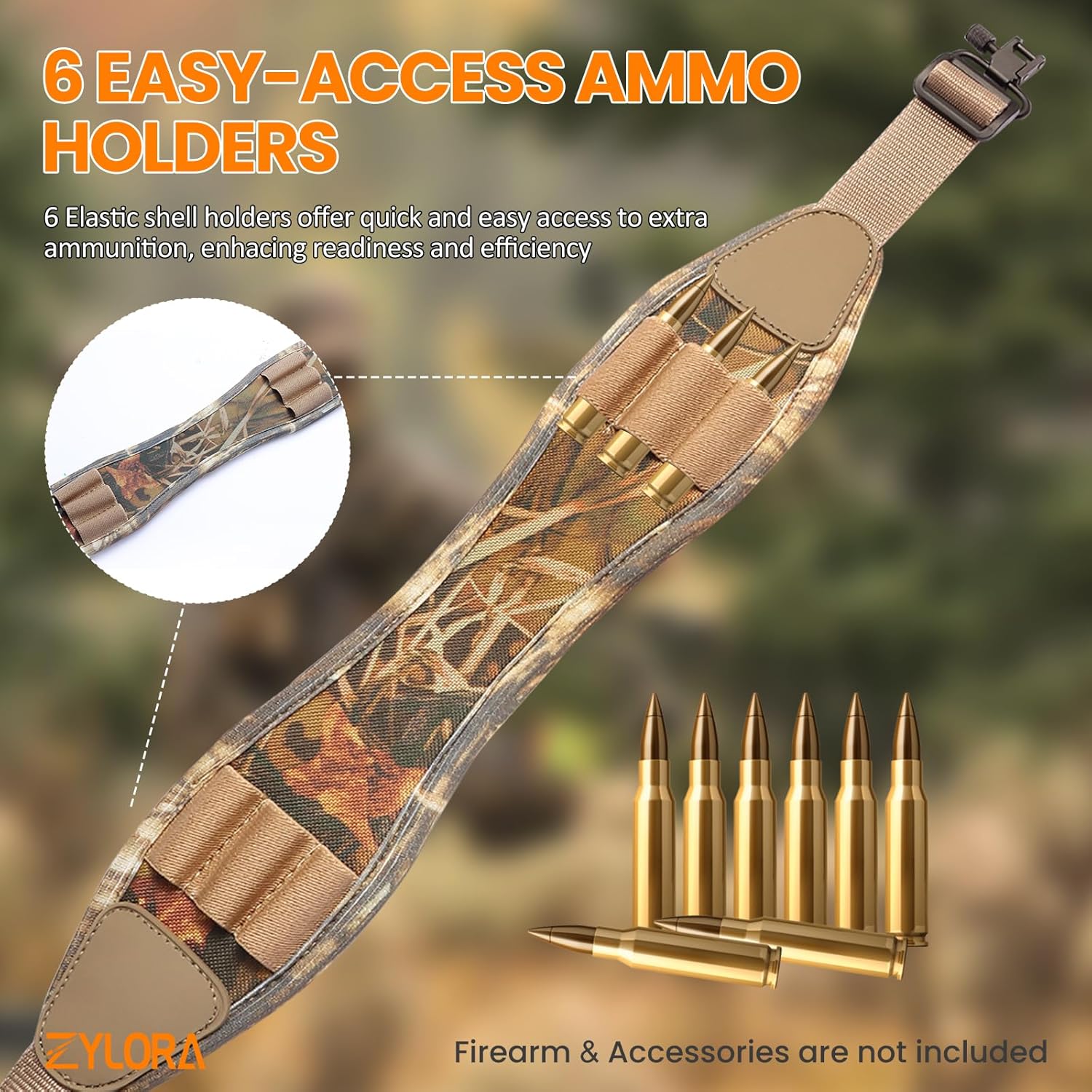 Zylora Rifle Sling(Camo) with Shell Holders Bundle with verious Ammo Holders